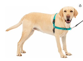 Le bon matériel ? Un harnais de type Easy Walk avec une attache au niveau du poitrail et une longe de plusieurs mètres (5 à 10 mètres).